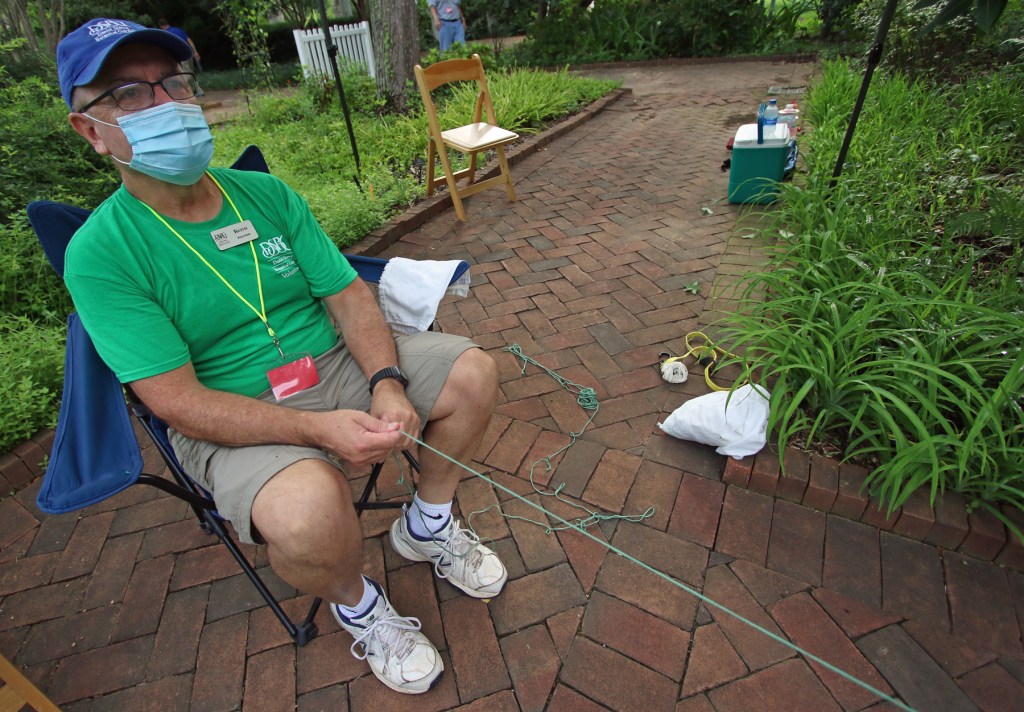 Keith Camburn keeps his eye on the trap Saturday, Aug. 1, 2020, at Daniel Stowe Botanical Garden. [Mike Hensdill/The Gaston Gazette]