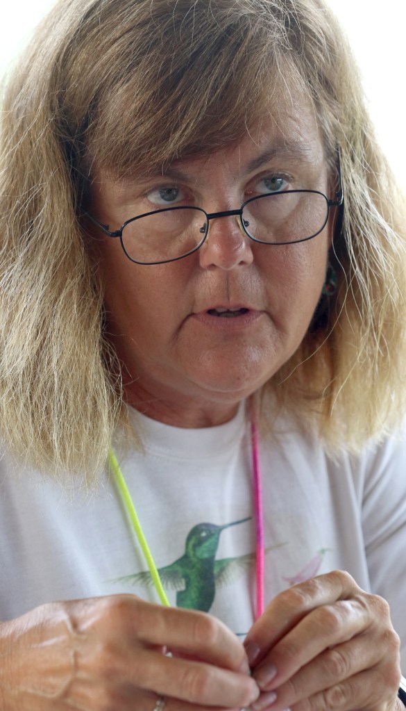 Hummingbird researcher Susan Campbell collected, measured, weighed and banded hummingbirds Saturday, Aug. 1, 2020, at Daniel Stowe Botanical Garden. [Mike Hensdill/The Gaston Gazette]