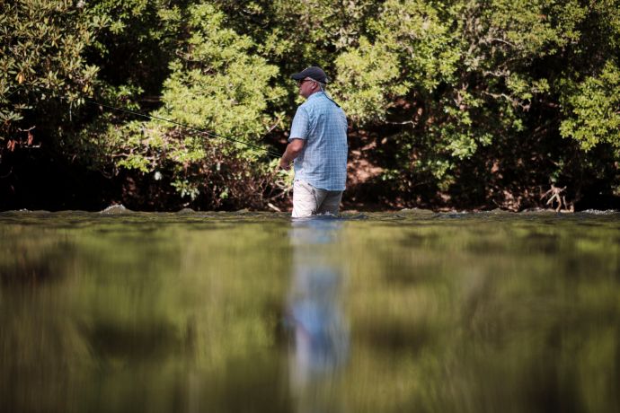 Fishing along the Chattooga River, which serves as the boundary between North Carolina and Georgia. (Photo by Matthew Franklin Carter)