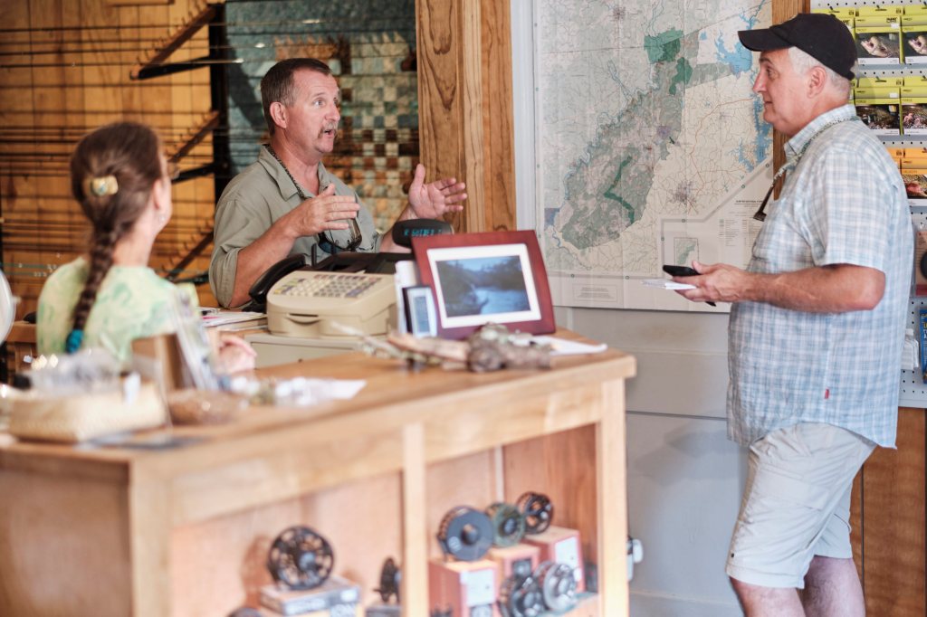 The two, according to Karen, “co-habitate” and their home and business is served by the Blue Ridge Electric Cooperative. They’ve been operating the Chattooga River Fly Shop for the past seven years, including the past four years at its location on Highway 28 in Mountain Rest. While Maddox operates the shop, selling merchandise and setting up trips, Karl is “the bug and fly guy, rods and equipment guy” who is on the river guiding groups.